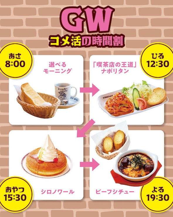 「無茶言うな……」 コメダ公式が提案する“GWの過ごし方”に総ツッコミ 「胃袋爆発するわw」「1日に全部は……」
