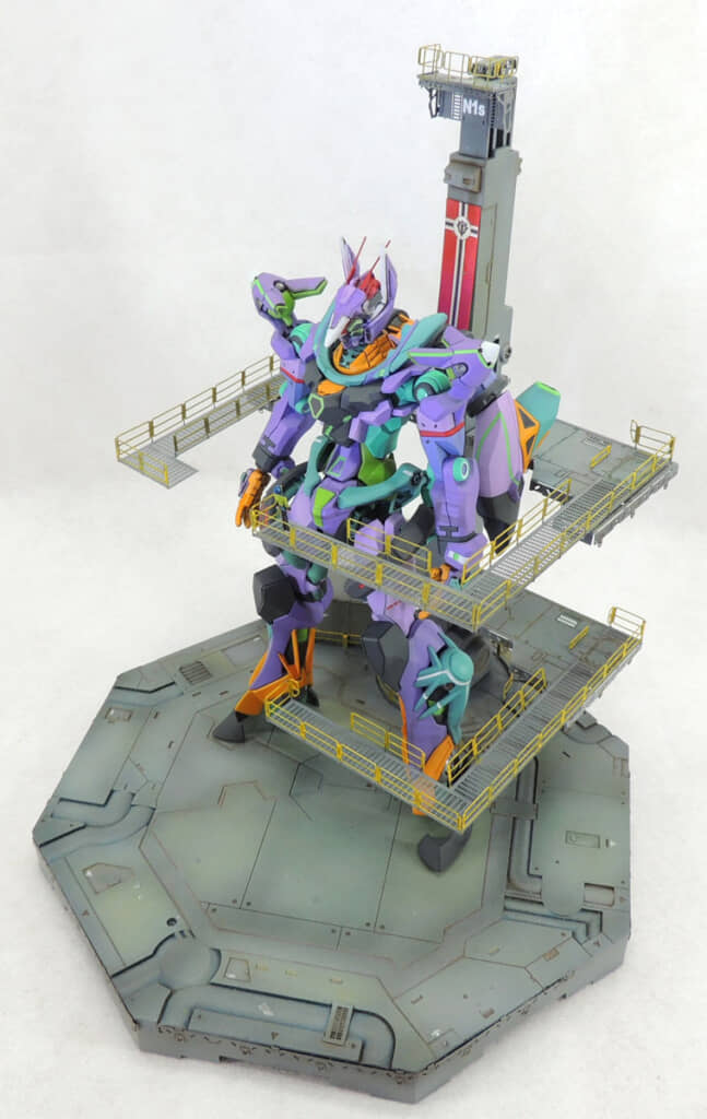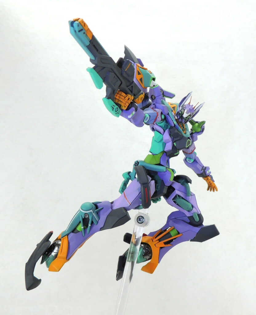 カラーリングは設定通りのパープル基調に変更。塗装にはガイアノーツ「エヴァンゲリオンカラー」シリーズが重宝したそうです。初登場の時点で、初号機そっくりと話題でしたしね。