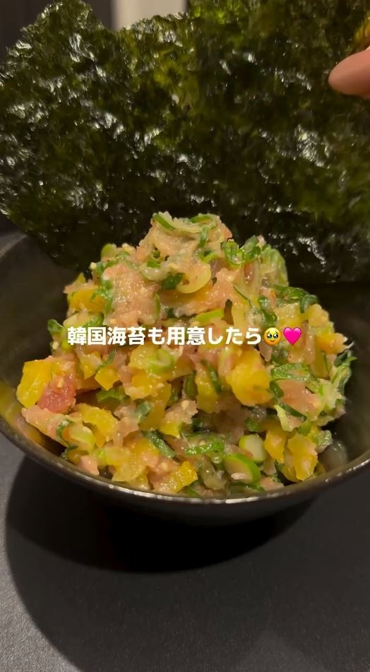 このとろっとした具材を、韓国のりで巻いて食べると絶品とのことです。絶対おいしいやつ……!