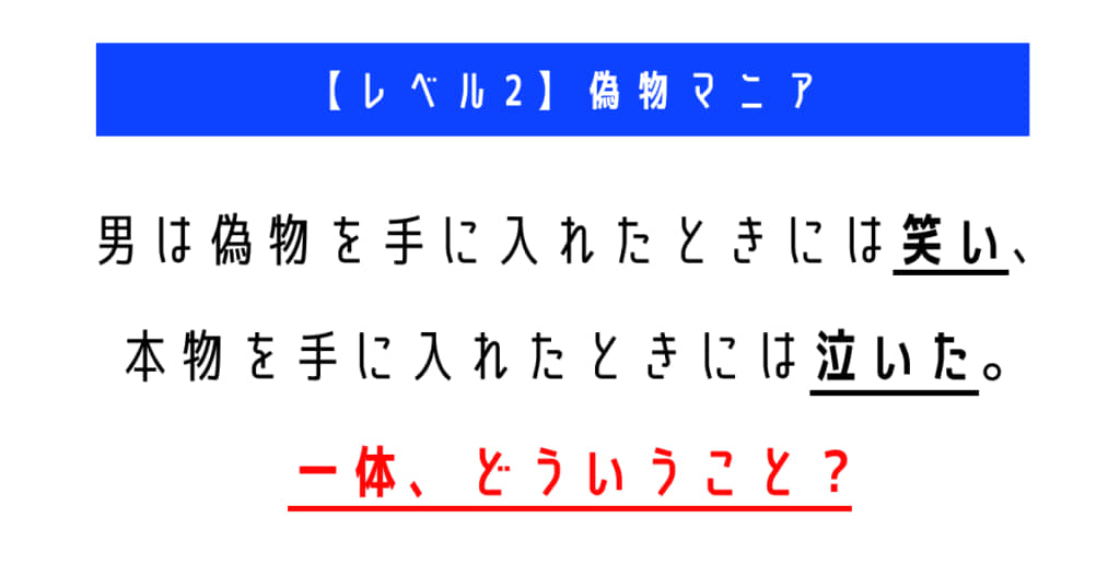 男は偽物を手に入れたときには笑い、本物を手に入れたときには泣いた。一体、どういうこと?【レベル2】