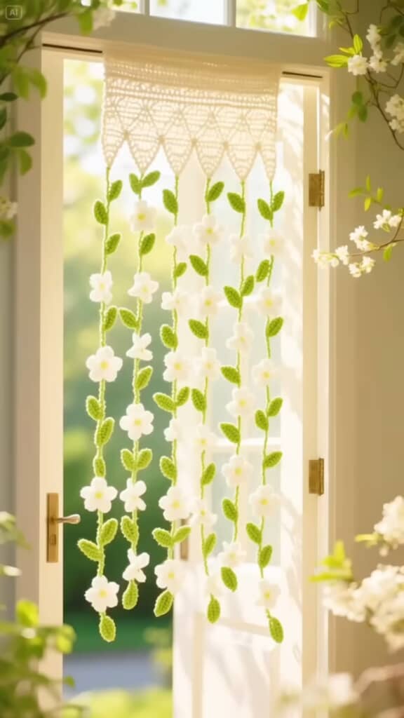 手編みで作るお花のカーテン