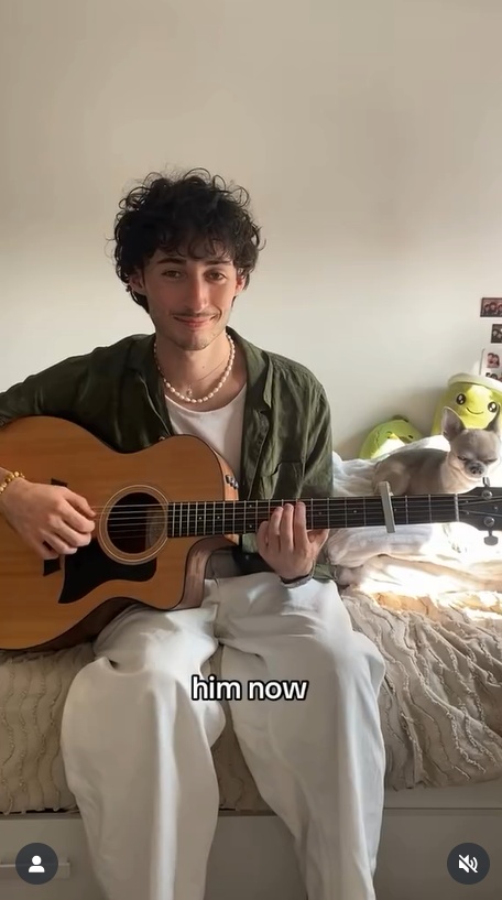その後、「今の彼」として映されたのは、色気たっぷりの男性。ギターを弾きながら、カメラを見て微笑みます。髪型や服装の雰囲気もかなり変わっていて、まるで別人のよう! とてもかっこよく変身しましたね。