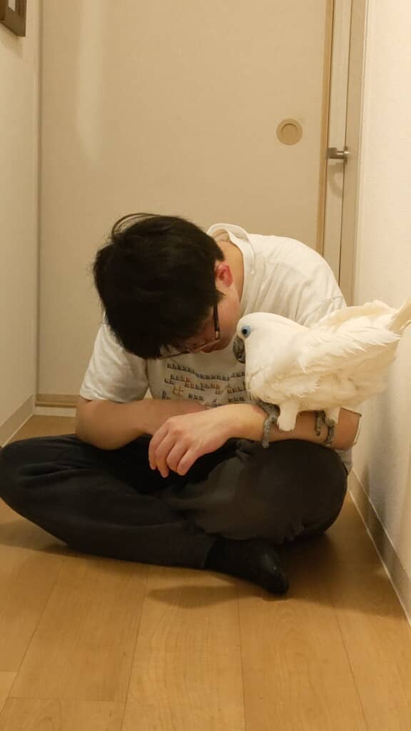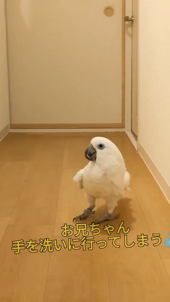 お兄ちゃんのことが大好きなオウムさん。トイレの前で出待ちする姿がX(Twitter)に投稿されました。記事執筆時点でこの投稿の表示数は45万5000回を突破し、“いいね”は1万3000件を超えています。