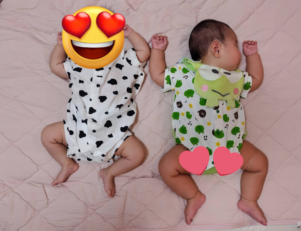 その日、赤ちゃんにカエルが並んだ柄の服を着せていた雛菊さん。やって来た友人の子は、白と黒の“牛柄”の服を着ていたそうです。かわいい2人の赤ちゃんは並んで寝ていますが、カエルと牛という動物の並び、なんか見覚えがあるような……?