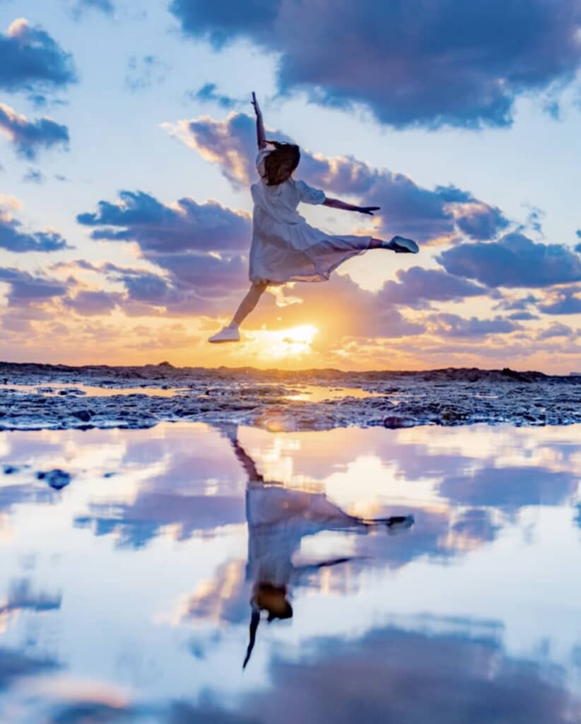 次の瞬間映し出されたのは、今までにAraiさんが撮影したsakoさんの写真! 海辺で華麗に舞う姿、満開の桜の中にたたずむ姿、喫茶店でカレーライスを差し出す姿、雄大な自然を臨む姿……。いずれもはっとするような美しさで、sakoさんを愛する気持ちが写真から伝わってくるようです。すてきな彼氏だ!