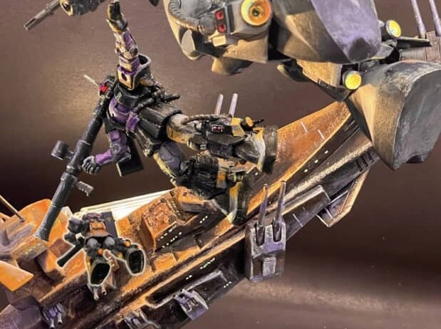 マゼランのキットはサイズが合わなかったため、画像編集ソフトで加工。「すばらしいスピード感あふれる構図」と絶賛している迫力満点なボックスアートを、自身のガンプラで見事に再現しました!
