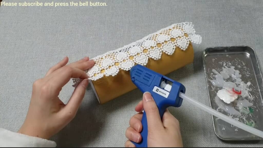 グルーガンでレースをペタペタ