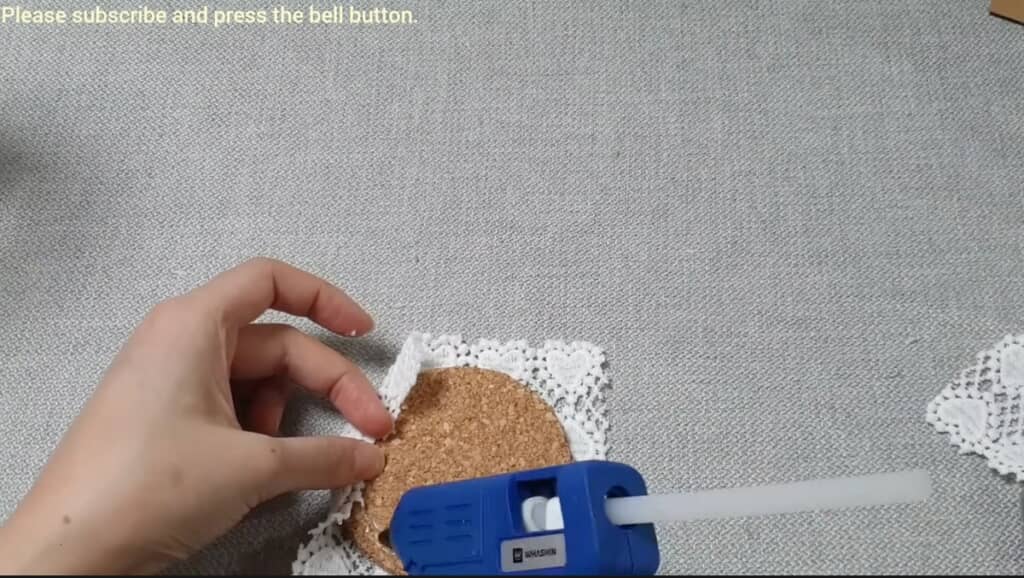 蓋にするコルクにもレースをペタペタ