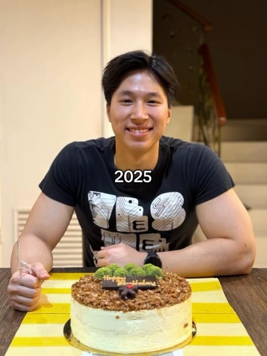 26歳を迎えた2025年には着ていたTシャツが小さく見えるほど、筋骨隆々に。肩幅が驚くほどたくましくなった姿が収められています。ずっと着ているTシャツも、体が大きくなったことによりギリギリの状態です。マッチョになってる……!