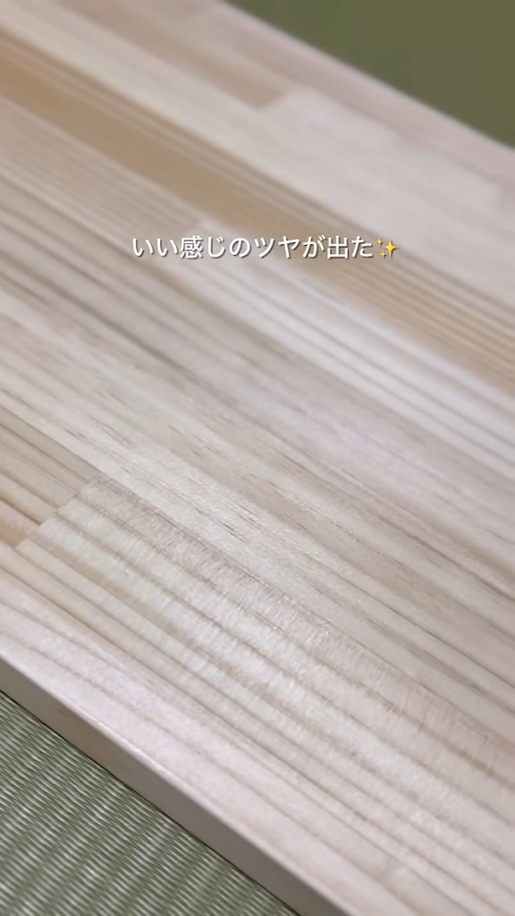 横幅150センチ×縦35センチの木板をヤスリや水性ニスで加工