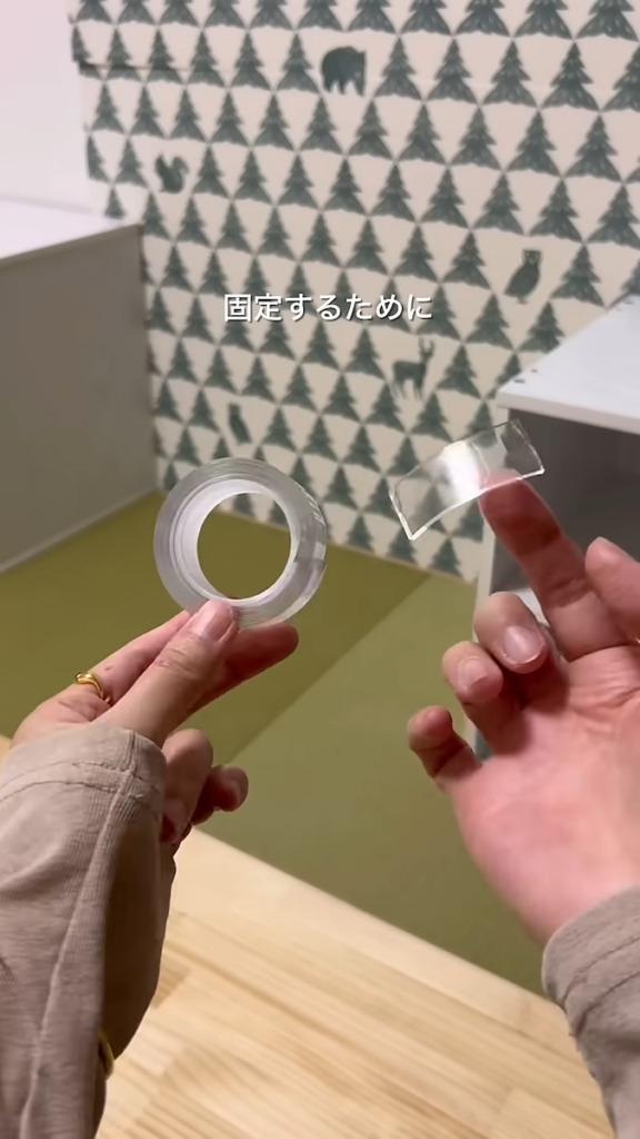 強力両面テープをボックスの天面に貼り付け