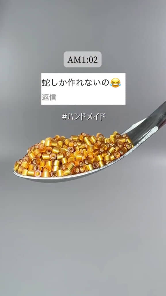 ビーズ作家が「ヘビしか作れないの?」という声を受け作ったものとは……? 本物と見間違うクオリティーの作品がInstagramに投稿され話題に。動画は記事執筆時点で144万再生を超え、1万6000件以上の“いいね”を獲得しています。