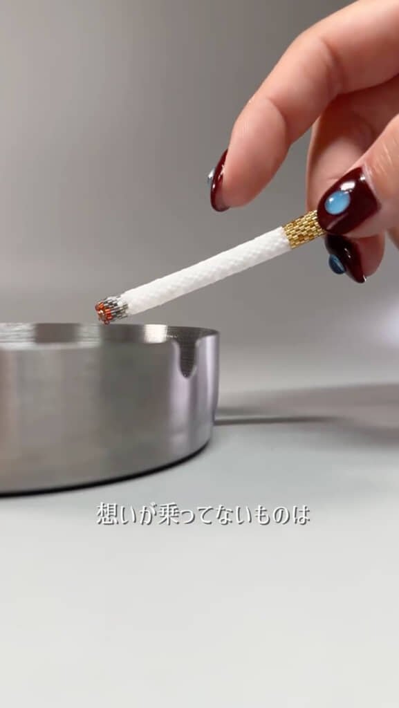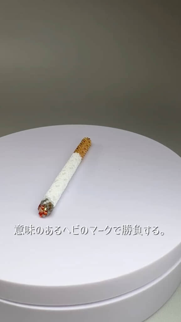 そうこうしているうちに、ビーズで作ったタバコが完成。細部まで丁寧に作られており、一瞬本物と見間違うクオリティーです。あえてヘビしか作っていないことをこうして別の作品で証明するところがかっこいいですね……! なお、こちらの作品は今のところ商品化する予定はないそうです。