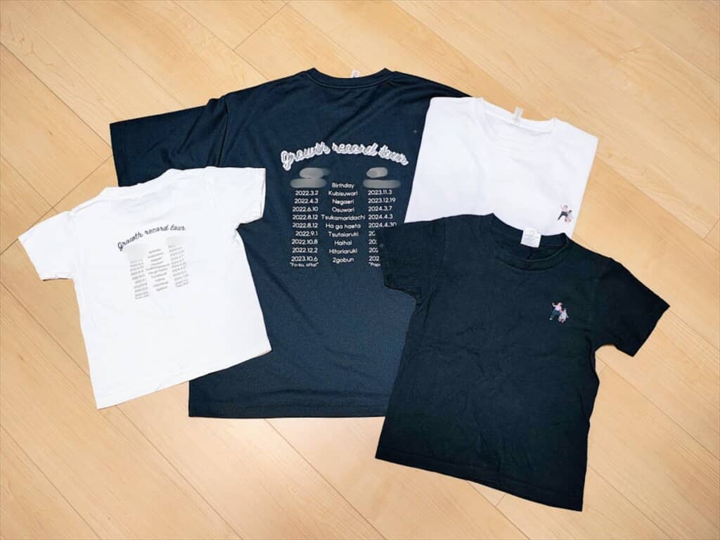 ちなみに、Tシャツの作り方は、デザインソフト「Canva」でツアーTシャツ風のデザインを作り、オリジナルTシャツをオーダーできるサイト「UP-T」で注文したとのこと。「普段使いもできそうなデザインと、シワになりにくい素材にしたのがこだわりポイント!!」とデザインと素材選びのこだわりも紹介しています。