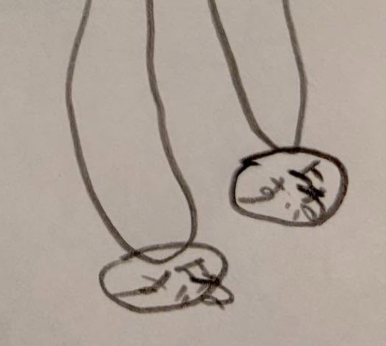そのイラストをよく見てみると……米津さんの靴には左右両方に平仮名で「よねず」と書かれており、はなさんは「靴に『よねず』って書いてあるのじわるwwww」とコメントしています。上履きだったのかな。