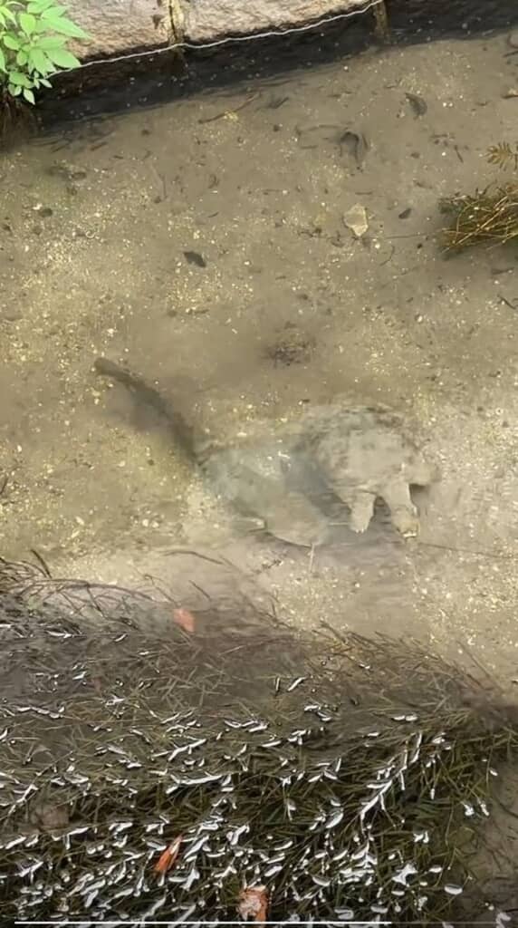 今回、川原さんが投稿したのは、散歩中にふと見た水路の中で起こっていた奇妙な光景。それは、まるで“長い付き合い”かのように仲良さそうにしているナマズとスッポンの様子です。