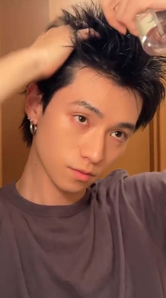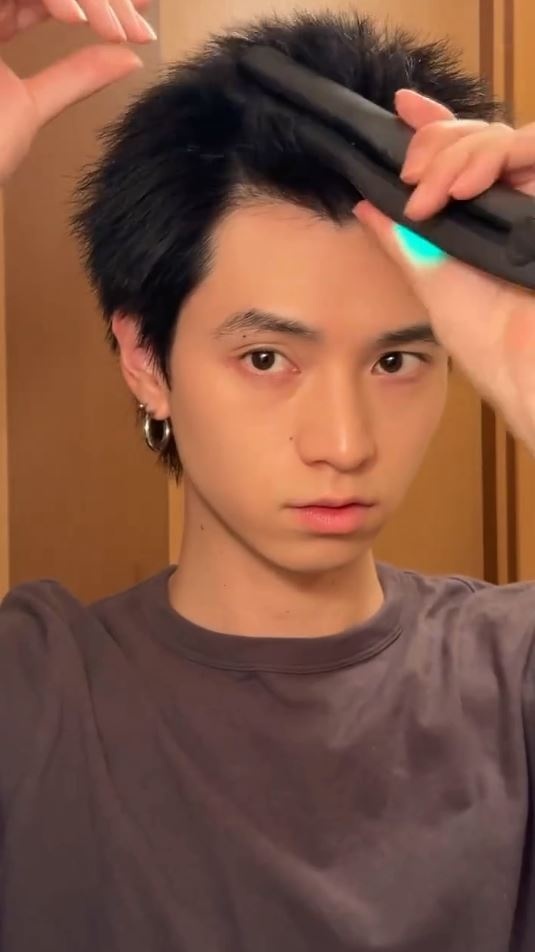 乾かしたあとは、ストレートアイロンとヘアスタイリング剤でツンツンヘアにセットします。