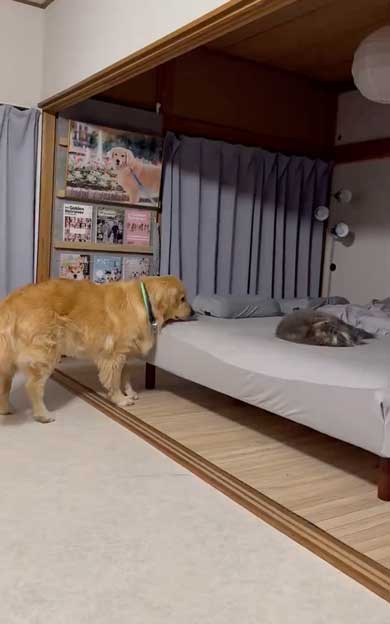 ナゲットの匂いを嗅ぎつけて現れたゆずちゃん