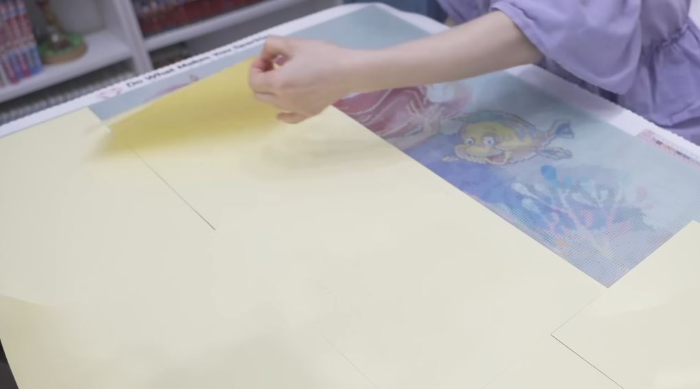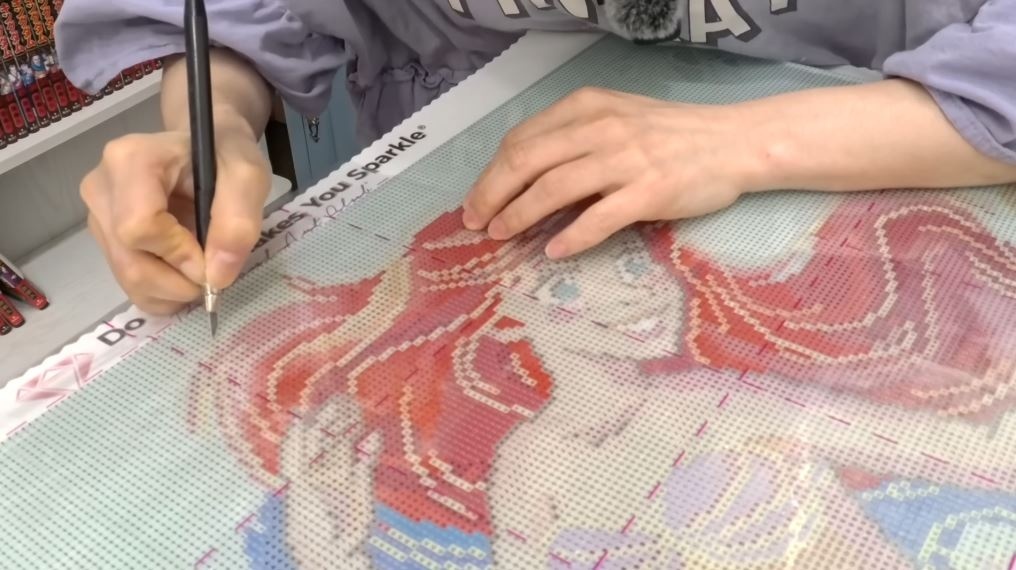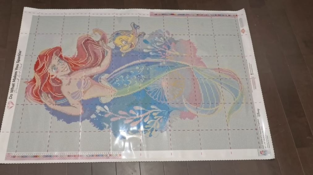 今回、みのりんさんが手掛けたのは、ディズニー映画「リトル・マーメイド」のアリエルを描いた正規ライセンス付きのダイヤモンドアート。まずは、それぞれのビーズを色分けしてトレーに入れていきます。