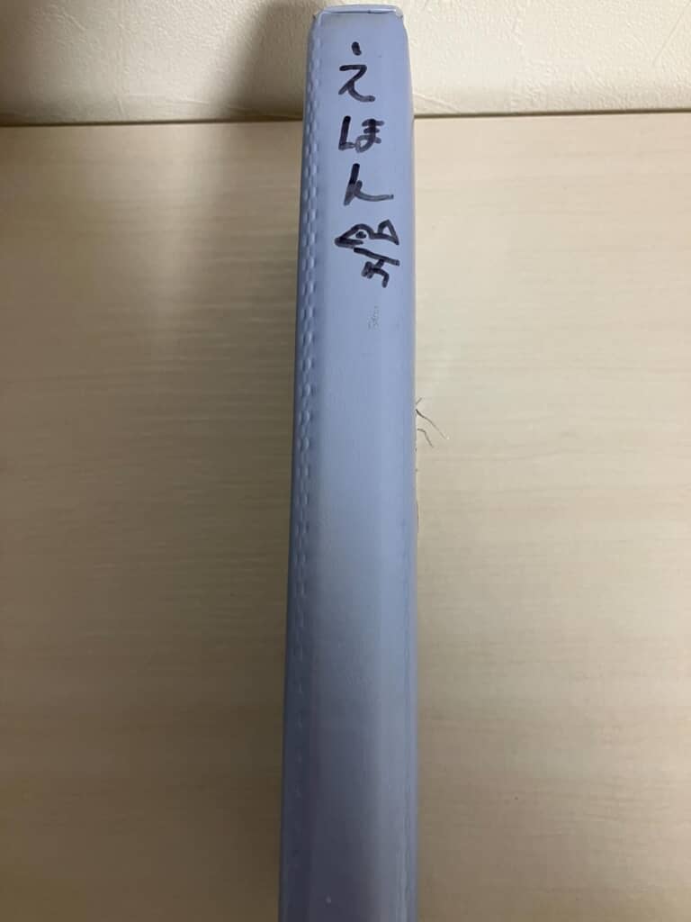 そして、筆箱の向きを変えて側面を見て見ると……そこには平仮名で「えほん」の文字が。なるほど! 娘ちゃんは、筆箱を絵本に見立てたのかもしれませんね。柔軟な発想力に驚きます。 ちなみに、こちらの面にも先ほどの鳥が描かれています。