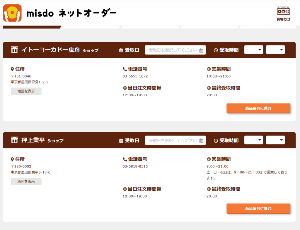 店舗によって当日注文時間帯が異なる(スクリーンショット撮影:ねとらぼ編集部)