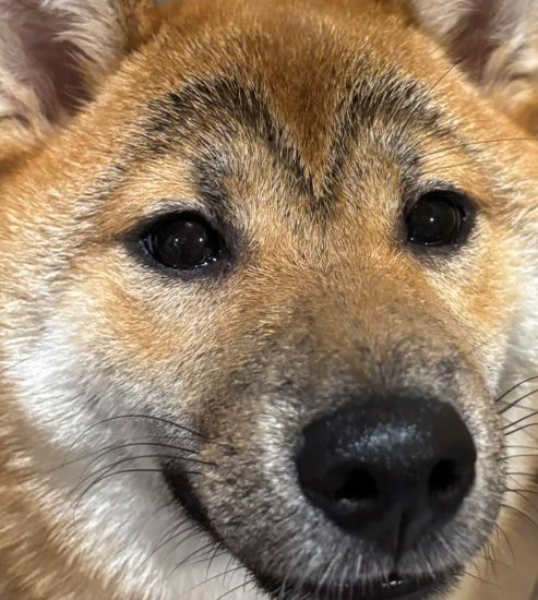 「そして眉毛が日に日に濃くなっていく……」と添えられた写真には、柴子ちゃんの濃いめのチャームポイントをクローズアップ。なんと目の上にくっきりとした眉毛のような模様が浮かび上がっています。まるで線を引いたかのように、黒い毛が目と目の間をつないでいます。