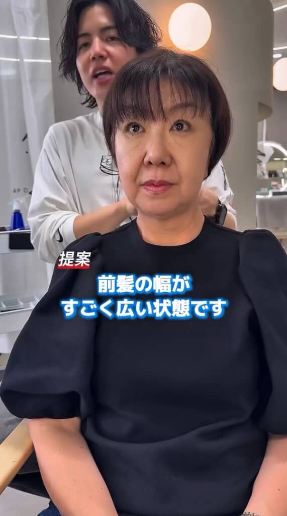 驚いた女性に、新屋敷さんは「なぜ切らない方が良いのか」を丁寧に説明。女性の希望は、「小顔に見える髪形」でしたが、今の彼女は小顔効果とは真逆の、前髪の幅が広い状態なのだそうです。小顔のポイントは「前髪」だそうで、前髪の幅を狭くして頬骨を隠すのが重要だといいます。そのためには、もう少し前髪を伸ばしながら整えていくのが良いのですね。