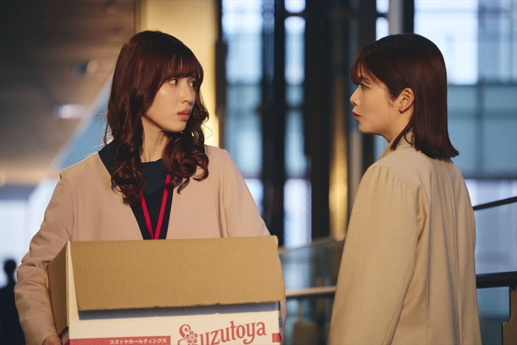 濃いめのアイシャドウに跳ね上げたアイライン、濃いリップに巻き髪という普段からは全く想像できない別人級の姿は、小芝さんにとって人生初。目が話せない美紗の姿が登場し騒動を起こした後、友也の目の前に現れたのは麗奈……というストーリーです。