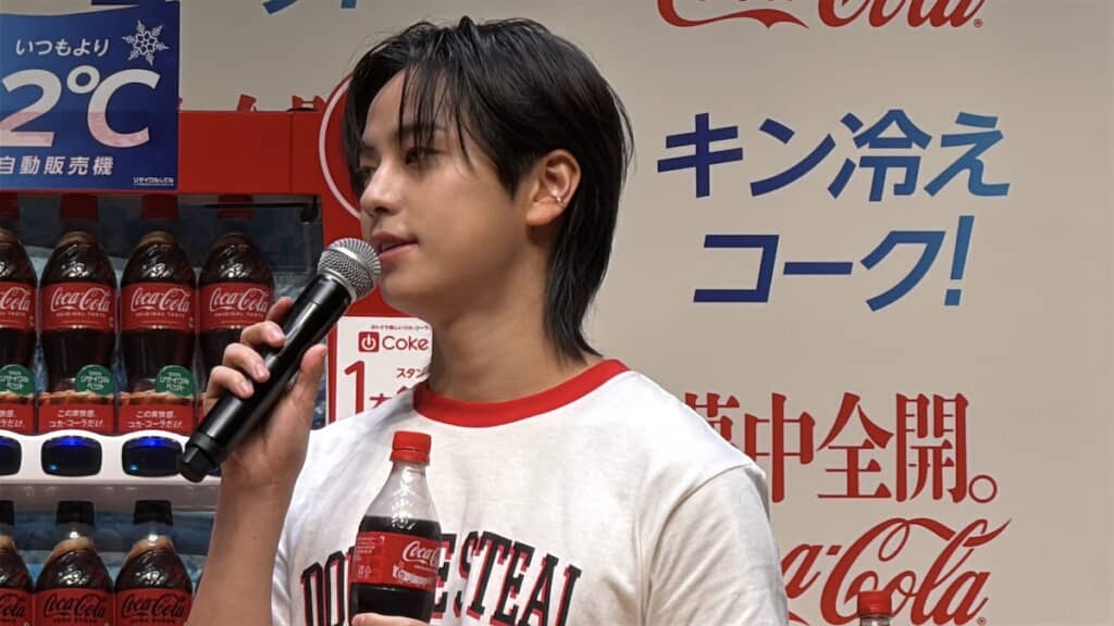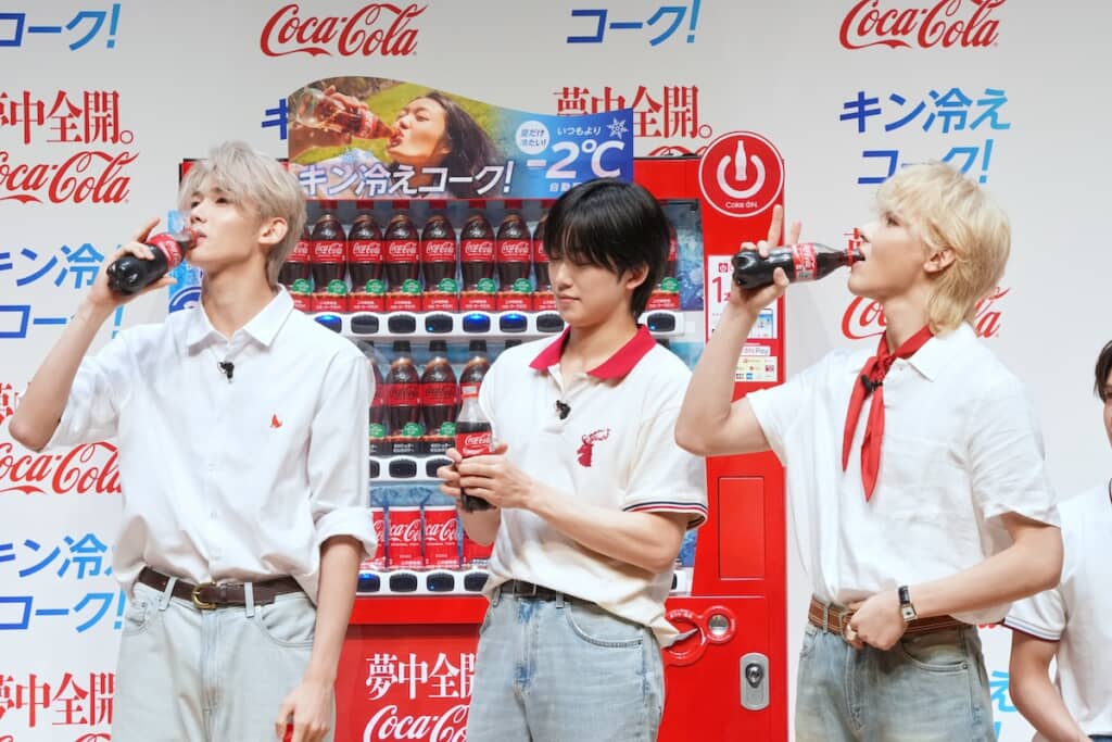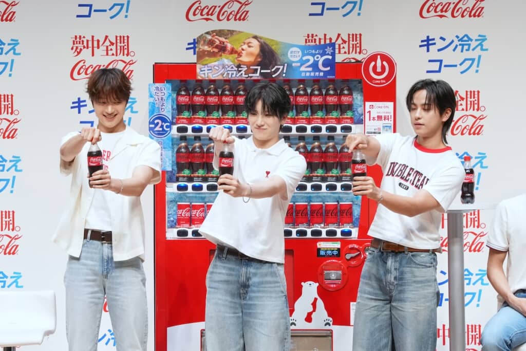 「いつもより2℃冷たい自動販売機」のキャンペーンイベントに登場した&TEAM