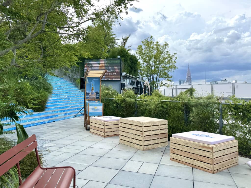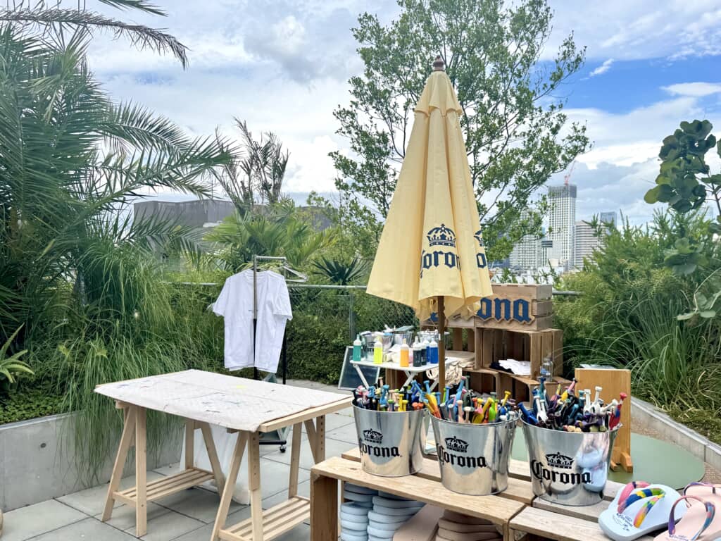 会場全体には常時リラックス感のあるBGMが流れていますが、時間帯によってはDJやアーティストのライブも披露されます。コロナビールを片手にアーティストの生演奏を聴きながら、緑たっぷりの屋上から原宿の街並みを見下ろす時間、これはめちゃくちゃチルい……!