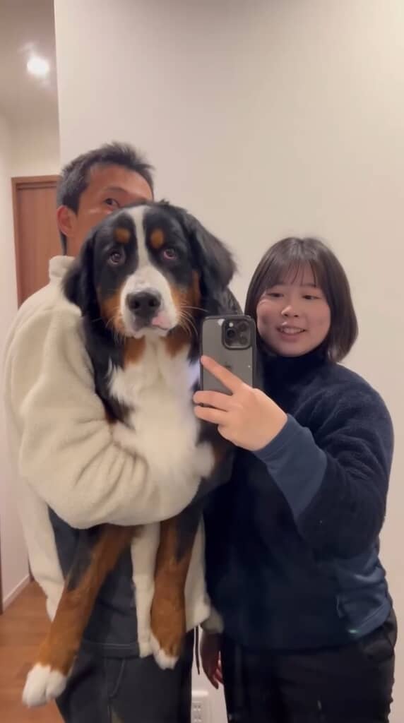 ママがひょいと持ち上げていた“あどけない子犬”→1年もたつと……「こんなに大きくなるんですね」 驚きの成長に反響