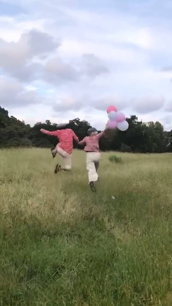 動画は結婚式のシーンに始まり、やがて各地を巡る2人の姿に。野原を駆け回り、おそろいのコーデでポーズを決め……と、まるで少年少女のようにはしゃぎまわっています。