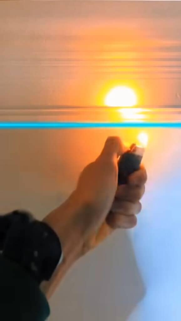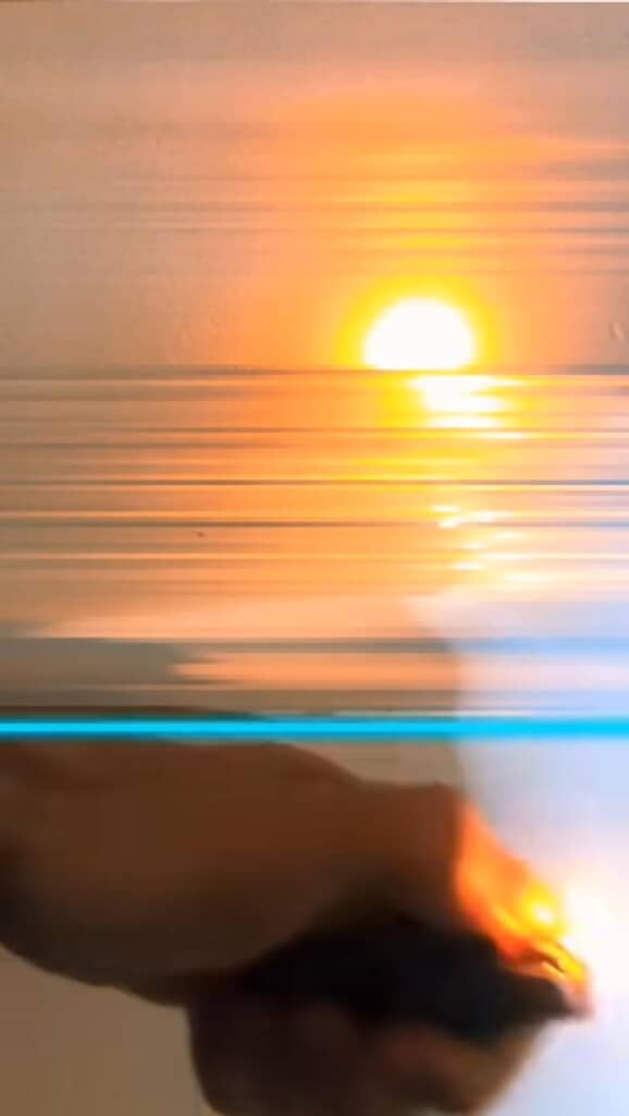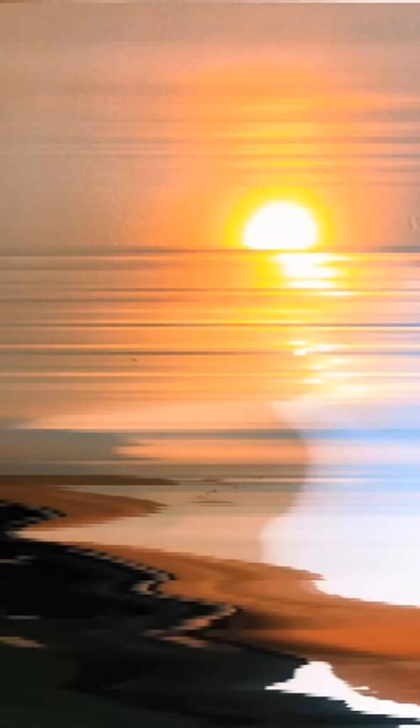ついに青いバーが画面下に到達すると……ライターをただ揺らしただけとは思えない、絵画のような作品が完成! ライターの火は海を照らす夕日に、白い壁は広大な海に、そして手と腕は砂浜となり、美しい夕日の海岸を描いています。これは天才すぎる……!