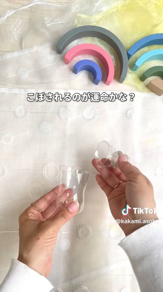 投稿者は、かかみ(TikTokInstagram)さん。TikTokやInstagramで、100均アイテムなどの手に入りやすいもので子どもとの遊びの時間をもっと楽しくするアイデアを多数発信しています。