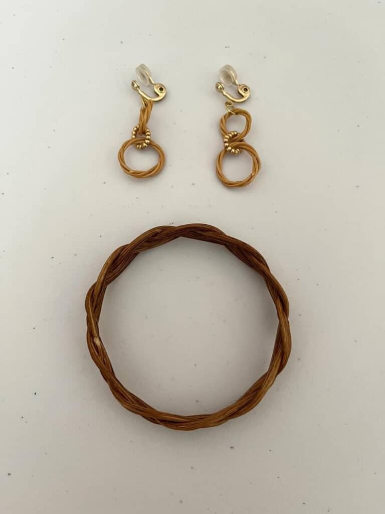 胸元がV字に切れ込んだ白シャツに、かごバッグと同じウッド素材のアクセサリーを合わせた夏っぽい爽やかな組み合わせで、「47歳いけますか。イヤリングとバングルもつける。どうだ」と意気込みました。