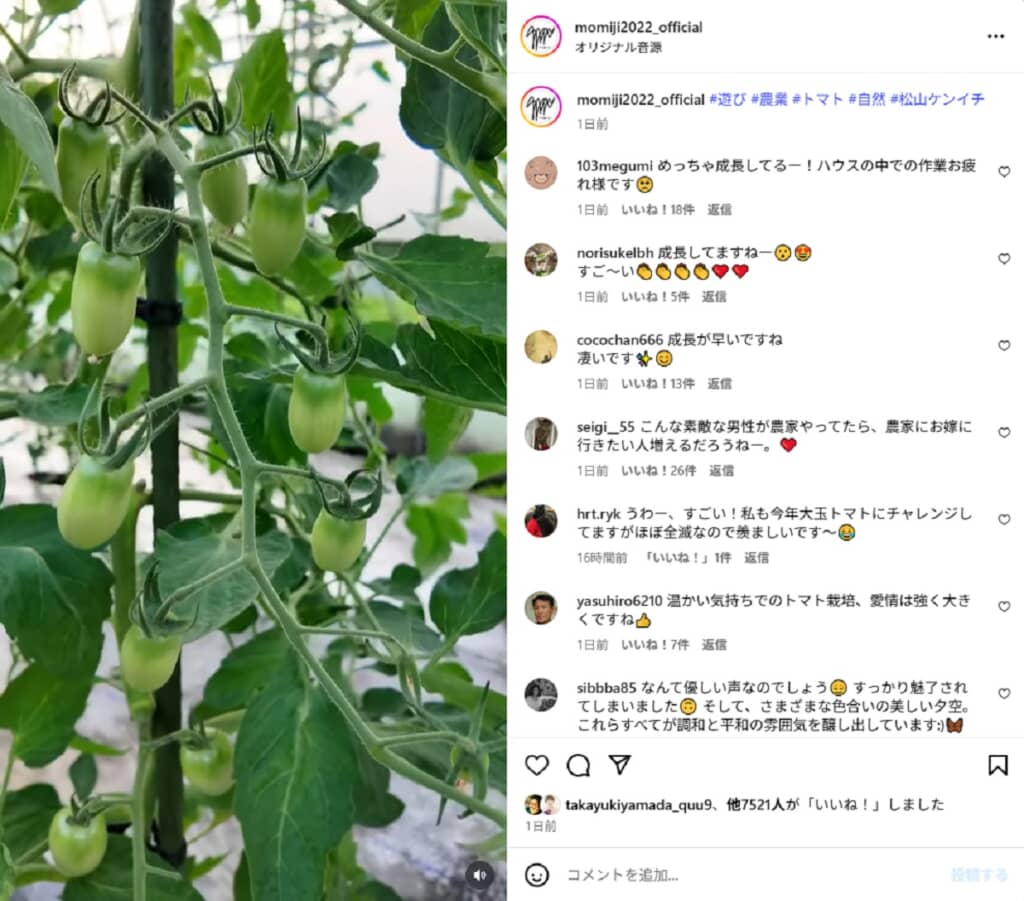 俳優の松山ケンイチさんが7月16日にInstagramを更新。大規模なビニールハウスでトマト栽培に励む動画を公開しており、ファンからは「凄いです」「もう趣味(家庭菜園)の域ではないくらい立派」などの反響が寄せられています。