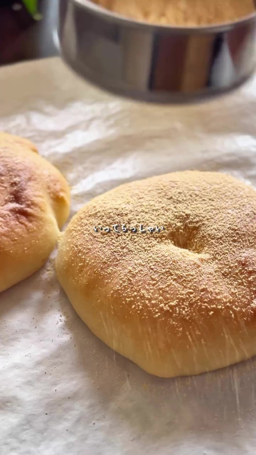 材料を生地と混ぜ終えたら、水でぬらした手で1個ずつ好きな形に整えます。そして、天板にクッキングシートを敷いたオーブン(200度)で、生地を15分間焼きます。穴は開けても開けなくても、どちらでも大丈夫だそうです。