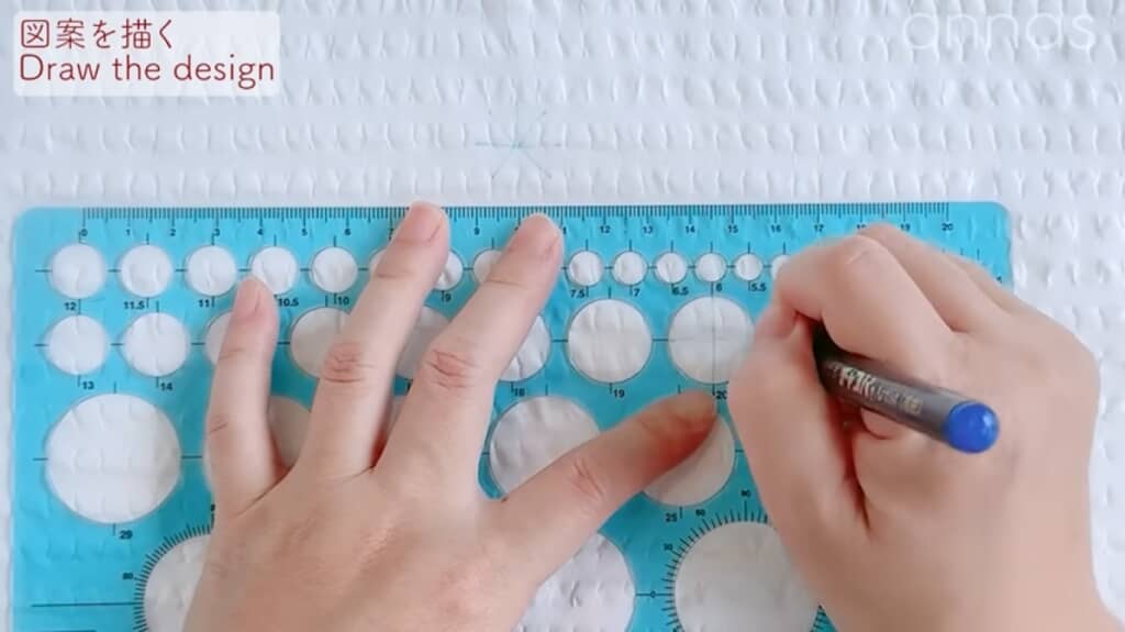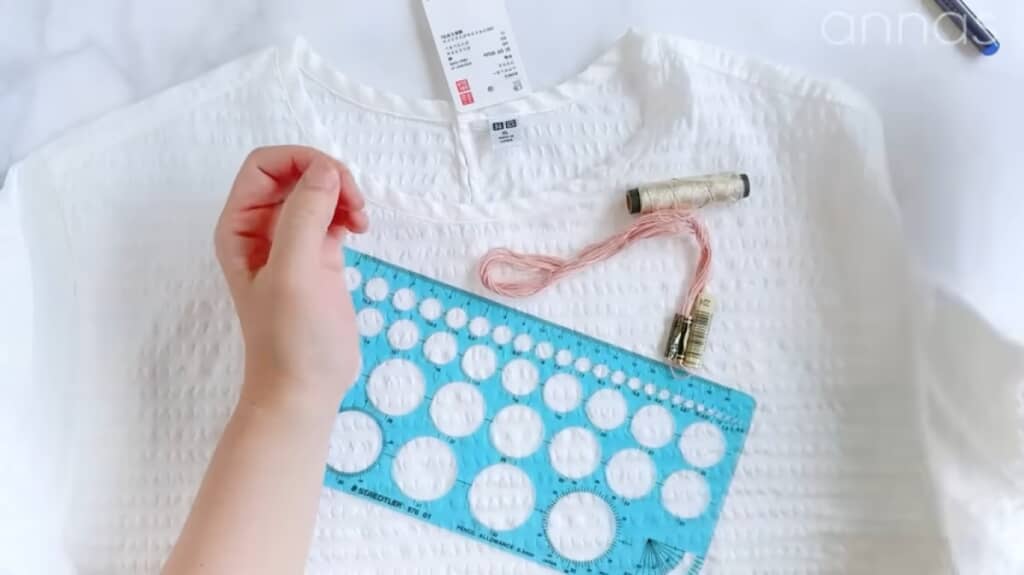 丸定規を使ってシャツに図案を描く