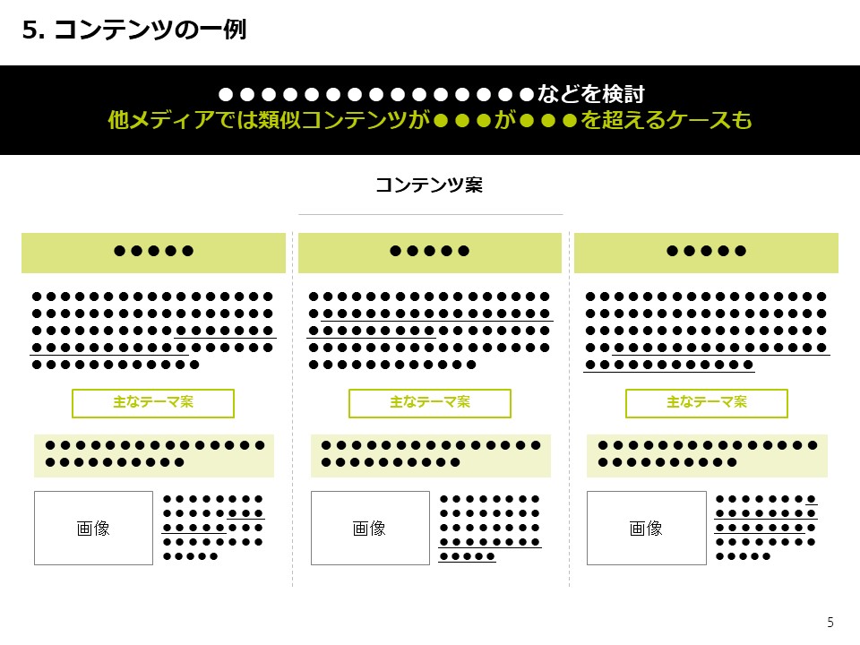 連載ネタとテーマの一例を説明するスライド。上司から「このスライド1枚の時間でサンプル記事1本を書いたほうが良い」とコメントがあったそう。