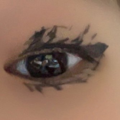 そして2枚目は、高校1年生になった現在のアイメイク写真。瞳を強調するカラーコンタクトに、上下のまつ毛の繊細な描き分け、涙袋まで丁寧に仕上げられた目元は、まるで別人のような洗練ぶりです。特に目尻のアイラインの入れ方には高いテクニックが感じられ、数年の間にたくさんの練習を重ねてきたことがうかがえます。