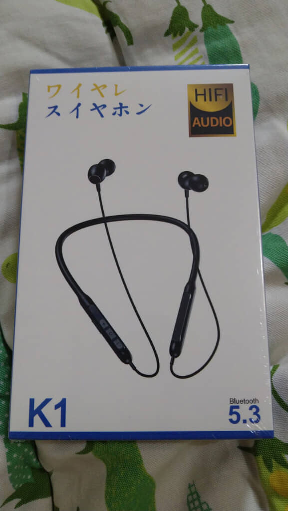 商品パッケージ上部には、大きく“ワイヤレスイヤホン”という文字が。しかし、“ワイヤレ”は4文字で改行され、“スイヤホン”が2行目になっており、黄色と青色に分けられた見た目と相まって大きな違和感があります。