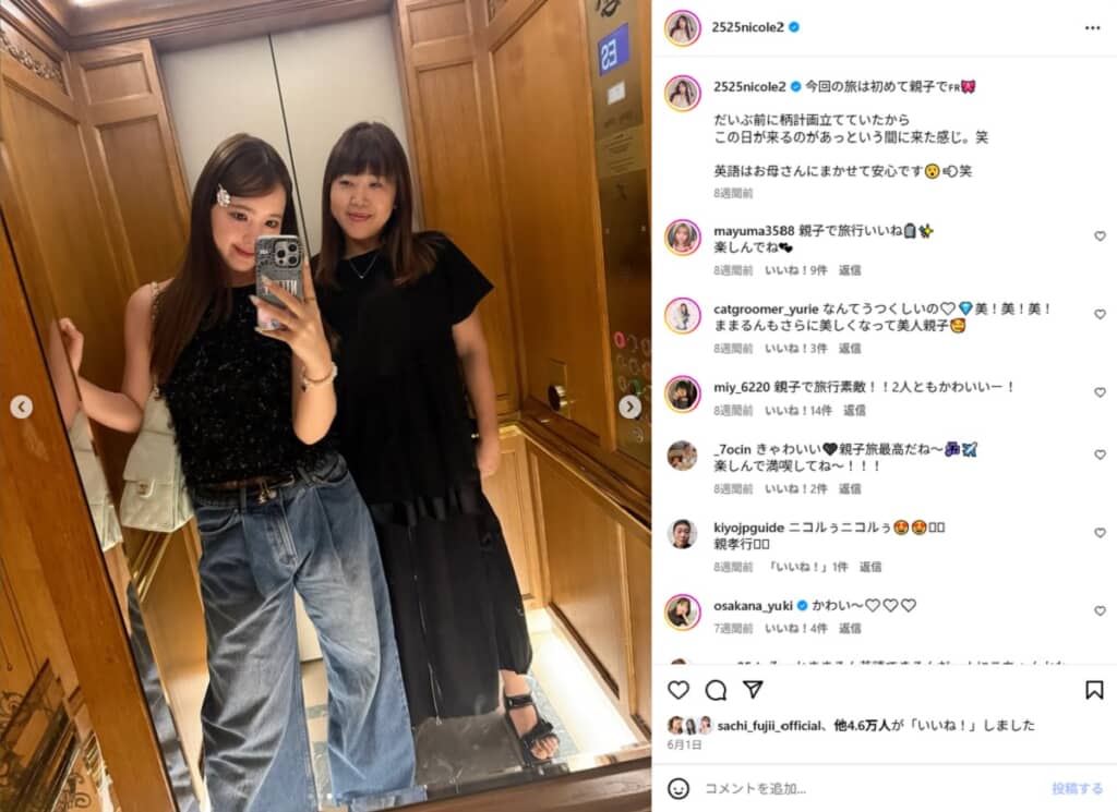 番組の話を指していると思われる6月上旬の親子旅(画像は藤田ニコルInstagramから)