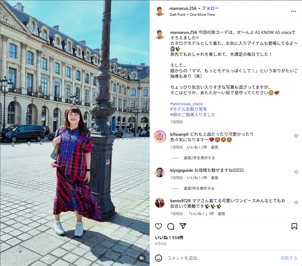 南仏旅行では激しいぶつかり合いがあったという“ままるん”こと母親(画像はままるんInstagramから)