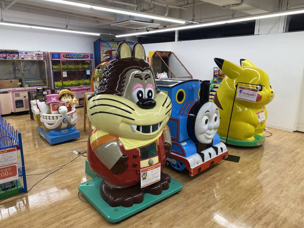 これ! ちっちゃい頃スーパーのゲーセンで見たことある!!!! 親に小銭をもらって乗り込んだ記憶が蘇ってきてなんだか泣きそうになりました。この並び方も、ラインアップも本当に懐かしい。特にこのピカチュウの乗り物。口元がもちっとして全体的にふっくらしたフォルムが昔っぽくていいですよね。