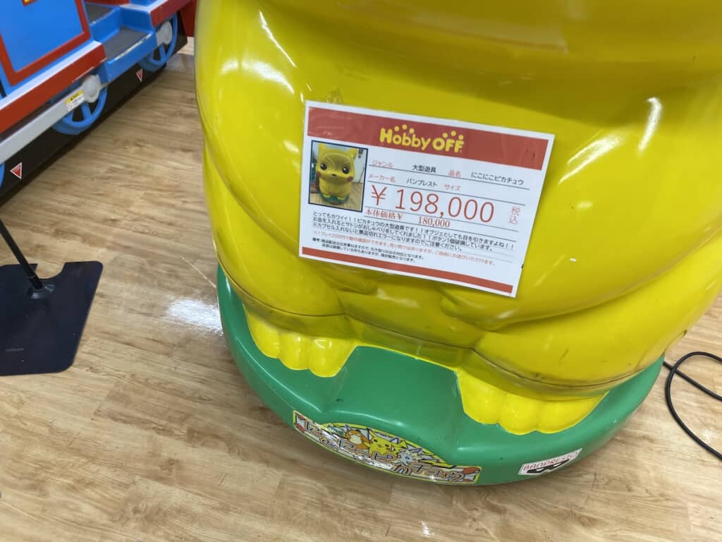 実はこれ、買えちゃいます。値段はなんと「19万8000円」。20万近く払えば、このピカチュウの筐体をおうちに置けるとなると意外と悪くない気もしてきます。心の中に眠っている少年の姿をした自分をいつでも喜ばせてあげることができます。どこかのスーパーが廃業するとき手放したのでしょうか。ゴミとして処分しないでくれてありがとうと伝えたい。