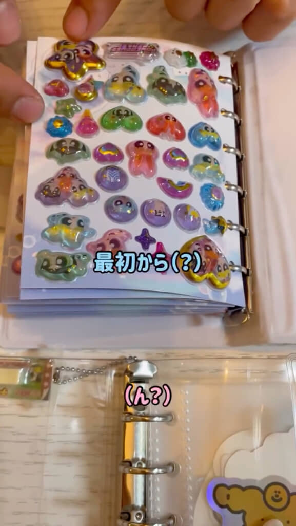 さらに中身を確認すると、今度はシール台紙を見て「これはなんなん?」「こーいうやつがついてたん? 最初から」と困惑。どうやら、シール台紙の存在すら知らなかったようです。