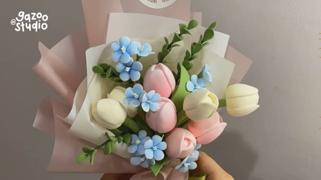 やさしい色合いの美しいフワラーブーケに、YouTubeのコメント欄には「わあ!」「めっちゃキレイ!」「私もチャレンジしてみる!」「子供用の粘土でここまでのものが作れるなんてすごい!」「とってもかわいい」「見ていてとても癒された」といった反響が寄せられています。