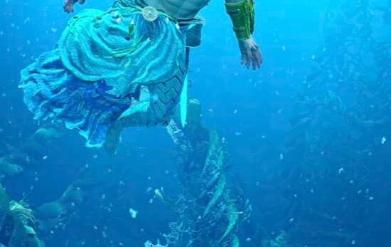 王冠が載った白髪に立派な白ひげ、エメラルドグリーンの下半身、トライデントそっくりな三叉槍などトリトン王のビジュアルを完全再現したmosktiさん。特に水中を泳いでいる姿は圧巻で、モンハンの世界にトリトン王が降臨したかのようです。
