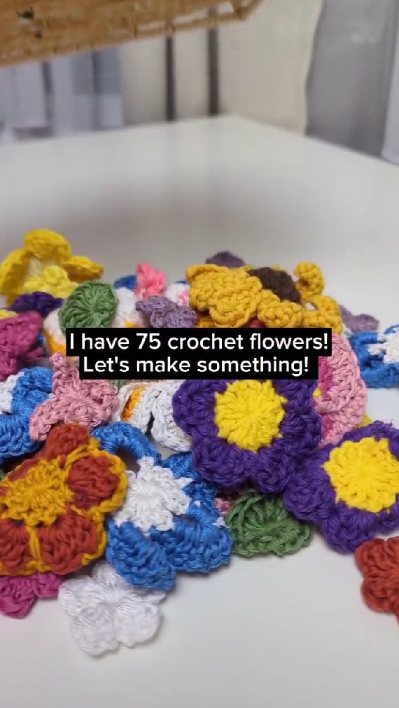 動画を投稿したのは、英在住のハンドメイドアーティスト「Bruna Crochet & DIY」(@brunaticality)さん。Brunaさんがかぎ針を使ってコツコツと編んだ小さな花々は、大きさも形も、そして色も違います。パステルカラーやビビッドな色合いが絶妙に混ざり合い、まるでお花畑のような美しさを放っています。