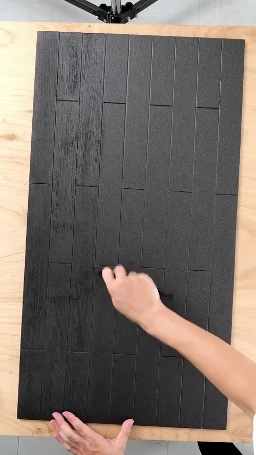 このフィギュアのポーズは、猗窩座が「破壊殺・羅針」という技を出しているもの。まずは、その際に出現する陣を再現します。黒色のボードにカッターで切れ込みを入れて茶色の絵の具で塗り、木目のフローリングのような黒い板が完成。